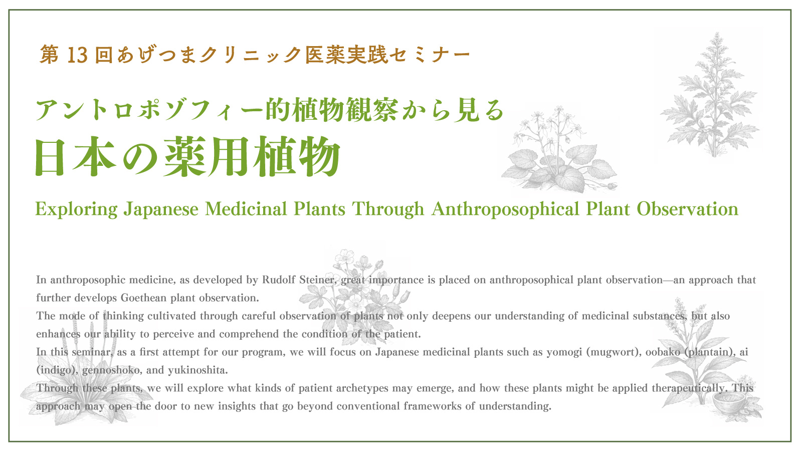 今回は当セミナーとしては初の試みとして、日本の薬用植物を取り上げます。